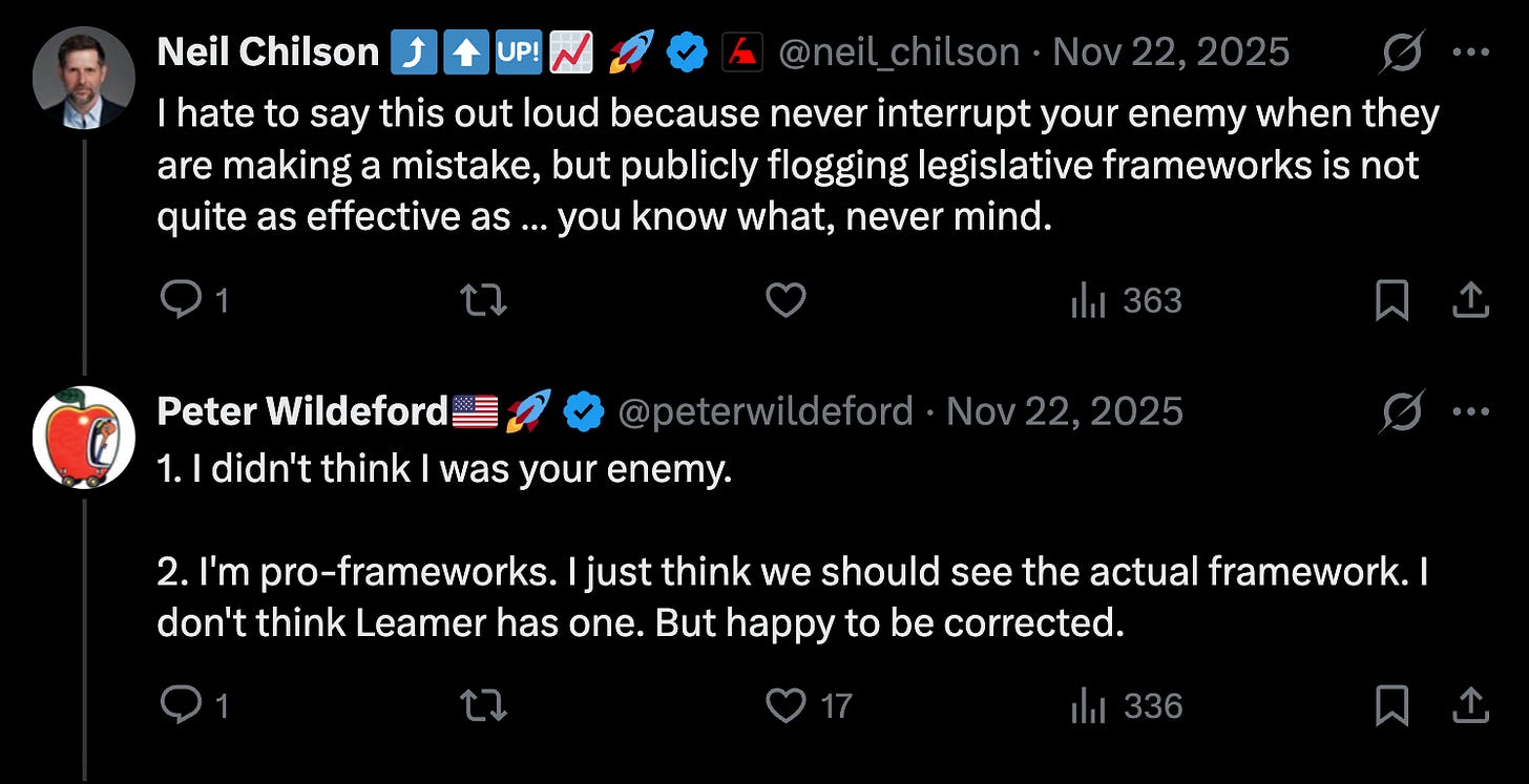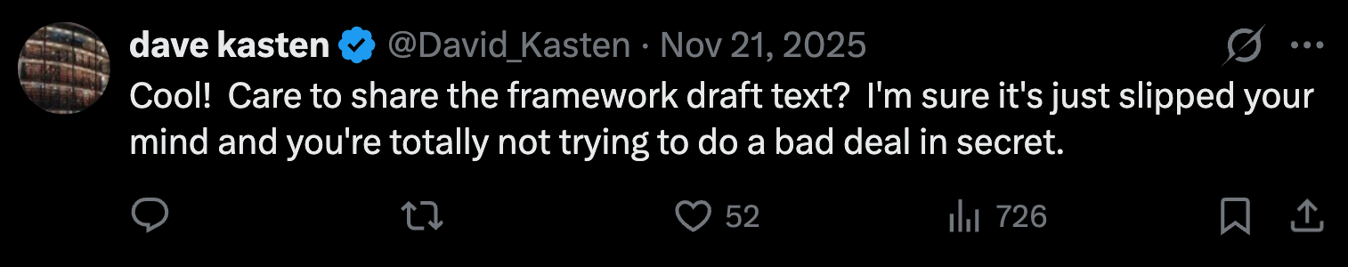 For months, the Super PAC has chattered on about a ‘federal framework’ without sharing details, despite being repeatedly asked.8 I’d love to be wrong about this, but I doubt they secretly have a vision for real laws and are just declining to share it.
