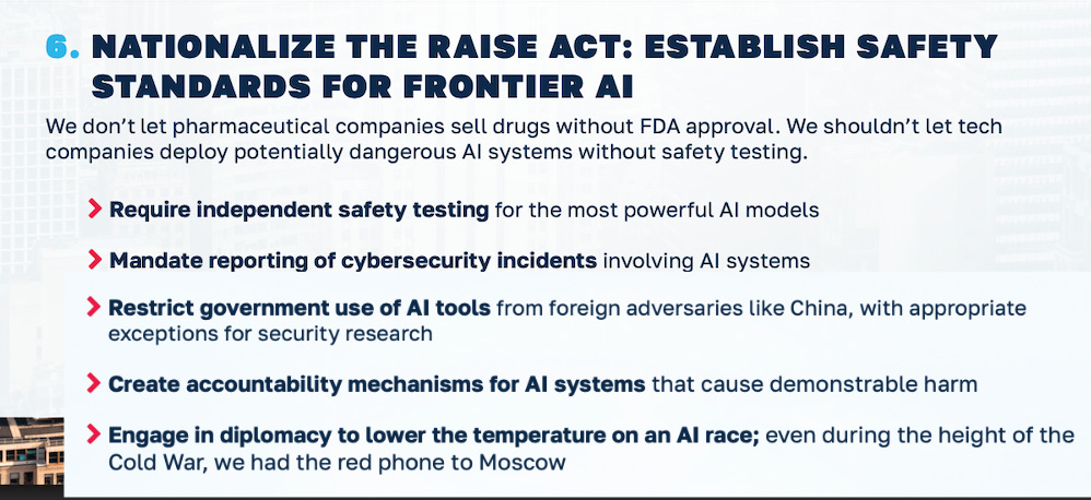Indeed, virtually everybody in US AI policy prefers federal action over a combination of state laws — so long as federal laws aren’t just about watching from the sidelines.2 So that’s the central question: What exact policies would we get in a supposed ‘federal framework’?