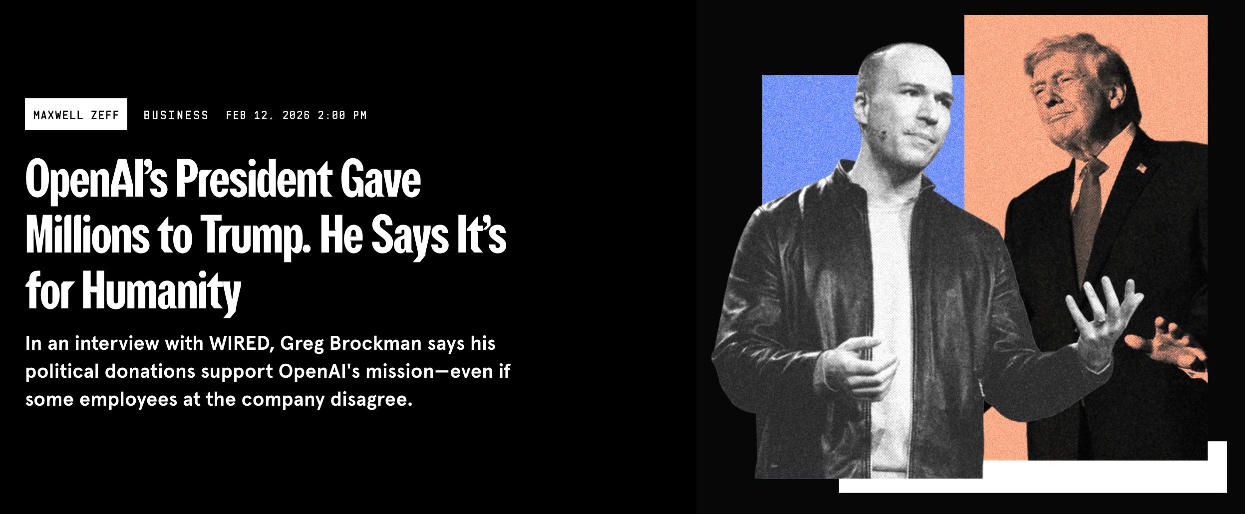 The orders to stand down come under the guise of, instead of having state laws, having a “federal framework” — a magical phrase for sounding responsible, even if the framework contains no actual safeguards. Meanwhile, a major force in the ‘federal framework’ debate is a pro-AI, anti-regulation Super PAC bankrolled by OpenAI’s president, Greg Brockman, who is also Trump’s largest donor. And so far, the Super PAC is getting its way.